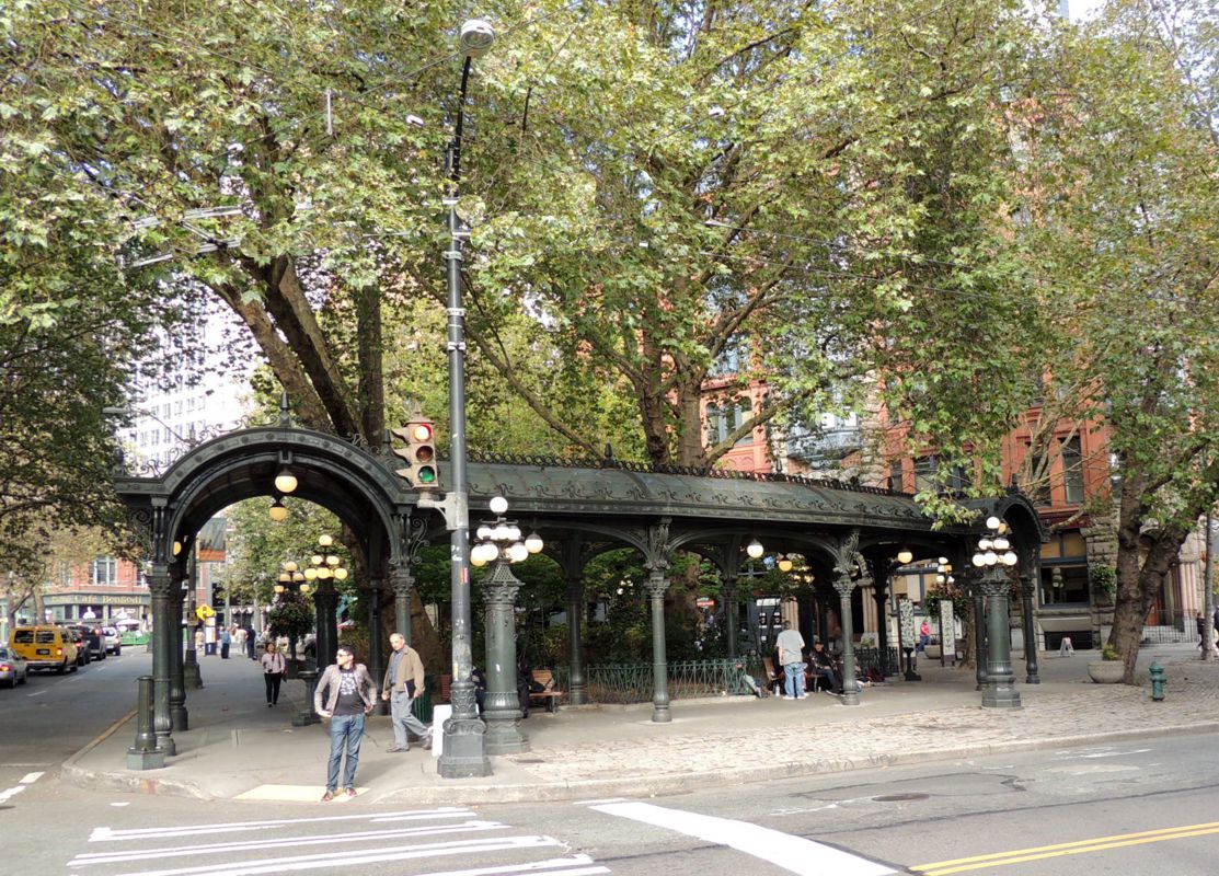 1st Ave. and Yesler Way. Pioneer Square. Pioneer Square was “ground zero,” the western anchor and the beginning of the 3,600 miles of the Yellowstone Trail east to Plymouth Rock. It is an historic and unique area, begun in 1853.
