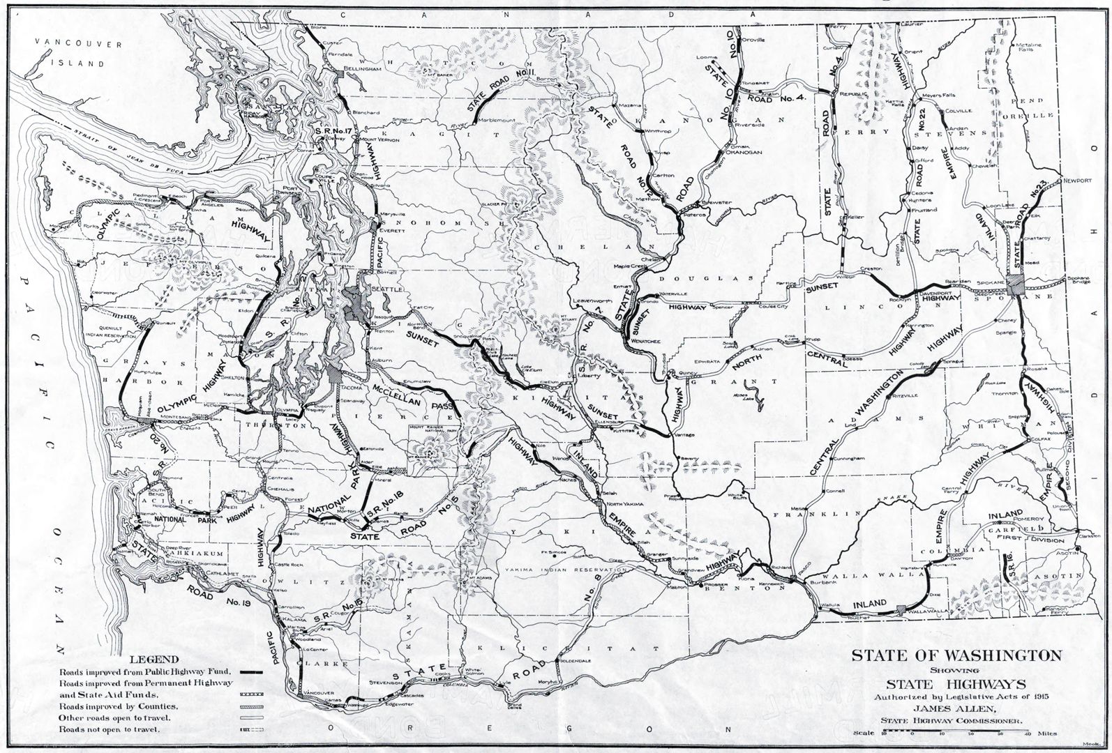 The Spokane County Good Roads Association spurred the county on to build and by 1921, 236 miles of county roads, including some of the Sunset Highway and the Inland Empire Highway had been built or improved.