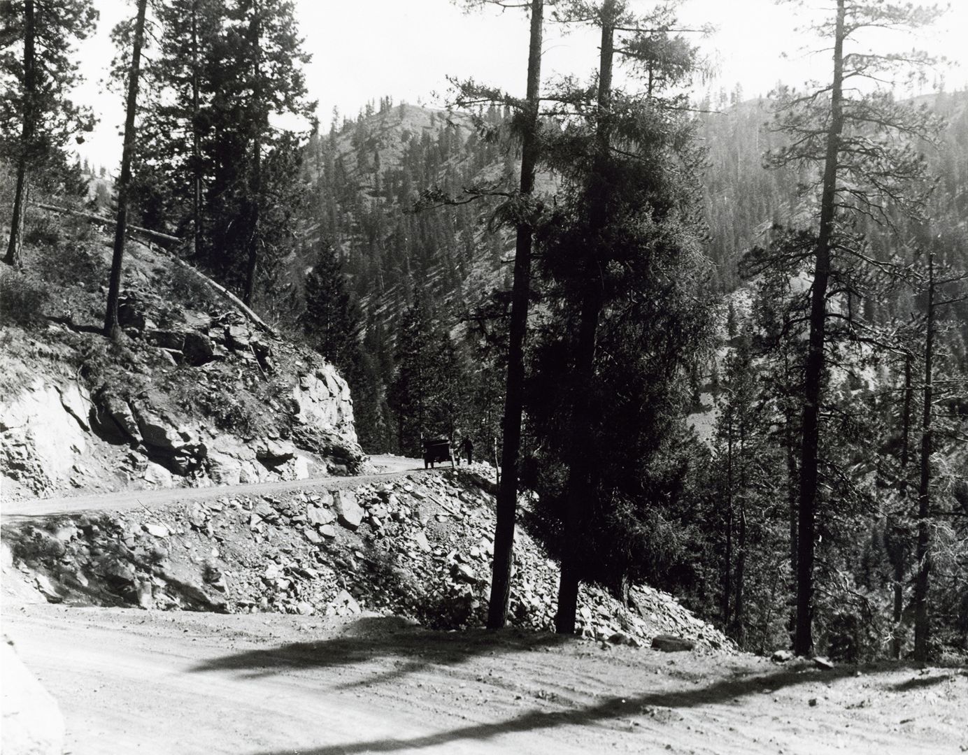 The road was 30 feet wide, with a maximum grade of five percent. Hillside material was the base. Work began in June 1915. The convicts worked both summer and winter months and were, with the exception of some blasting powder, equipped with only hand tools.